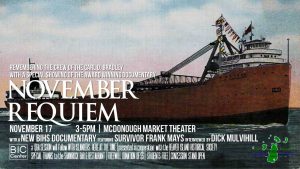 This weekend we have special events planned with the Beaver Island Historical Society to commemorate the sinking of the Carl D. Bradley 50 years ago on November 18th. We’ll remember the members of the crew that were lost as well as their families. At 3:00 p.m. on Saturday we’ll show a documentary about the tragedy and its impact on Rogers City, the Bradley’s home port. That will be followed by the premiere screening of a BIHS interview with Frank Mays, one of just two survivors of the sinking and the only one still alive. He was interviewed this summer by Dick Mulvihill. Dick will be present for the showing along with a panel of islanders who were here when the Bradley went down. They’ll share their memories of the event and take questions.