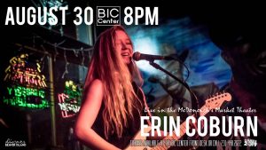 Our Celebrate Summer 2019 events continue. On August 30, we welcome Erin Coburn to the McDonough’s Market Theater for an evening of special music from this rising star. She has captivated her audiences since a young age, with her prowess on guitar, her powerful vocals, and bringing her own style of rock with blues influences into the 21st century. You don’t want to miss her performance at the BIC Center so you can say you saw her perform before she was world famous. Showtime is 8:00 p.m. Tickets for both events are available at the BIC Center front desk or by calling +1 231-448-2022.