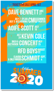- PARC Early Concerts [June 10 &13 at 7:30 p.m.] presented in cooperation with Patrons of the Arts in Rural Communities (artists to be announced)